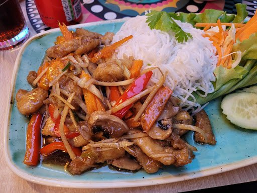 We ignored the negative reviews already posted here — unfortunately, that was a mistake. The portions are extremely small and significantly overpriced (12€ for four tempura prawns is steep, even by Swiss standards). I wouldn’t recommend the chicken wok — the chicken was mushy and overly salty. My husband had a tofu dish that was tasty but far too sweet. I also ordered a mojito that was so overloaded with sugar or syrup it was undrinkable. When the server asked why I hadn’t touched it, I answered honestly. Still, the drink remained on the bill — which felt in line with the overall lack of generosity reflected in the portion sizes. I don’t recommend this place. I’m writing this review for people like myself — hoping to avoid being misled by the high rating and wasting a precious...