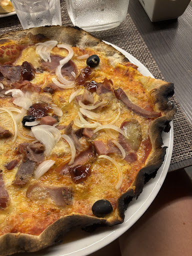 Had a lovely evening there, had drinks pizza and deserts as a family of 5. Started quite quiet around 19:00 but got busier around 20:00 or so. Pizza were thin and very crispy, loved the homemade chocolate fondant! The outdoor setting was lovely and cool after a really hot day, they had planned mosquitos repellant and something to keep the wasps busy as well which...