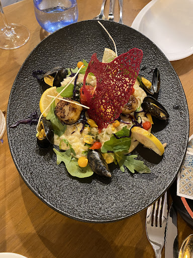 Read moreLoved everything about this restaurant, the food, the service and the ambience. As another reviewer said, when all things are excellent then why not come again and again. We did. When went on two consecutive nights and loved it both times. Not speaking French was not a hindrance. The wait staff were excellent as were the chefs. Watching over it all was the maître de, no doubt the owner who is meticulous. I noticed his watchful eye all night, witnessed his attention to the little details that shows his love for his profession. Over two nights we had the moules with coconut ginger broth, fritto misto, brick goats cheese panzetta in honey pastry and the Risotto Saint Jacques. We often share dishes as we are not big eaters. All the food was delightful. By the way, the desserts are decadent and worth the adventure to indulge. One usually enough for both of us. So this keeps the spend down. So our €84 spend is misleading if you want individual dishes for all course. As I said we are not big eaters and are happy the share a dish for...