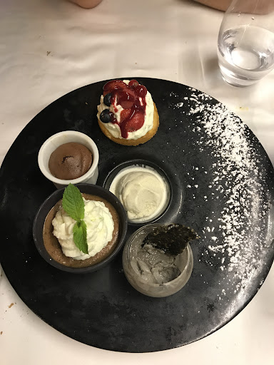 Ate: oysters, ceviche, fish and muscat gourmand dessert with small bottle of wine