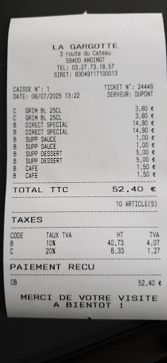 Read moreDe passage à Cambrai, j'ai fait un détour pour prendre le repas à la Gargotte. Je connais ce Routier depuis de longues années depuis l'enseigne Le Chant des Oiseaux. Pour garer le semi : pas de souci. Le parking nickel. En entrant dans le restau je constate qu'il n'y a plus de buffet de hors d'œuvre. En fait il n'y a plus que le plat. Je déplore qu'une fois assis, on te demande ton choix et quelques minutes après on te sert ton assiette d'une manière un peu impersonnelle. Le tarif a bien changé. A un tel prix, les Routiers ne s'arrêteront plus. Le restau etait plein (employés des usines à proximité) et on m'a bien fait remarqué qu'il faut mieux réserver !!!!! Aurevoir le...