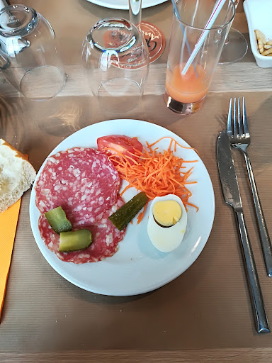 Read moreJ'ai adoré ! On ne connaissait pas du tout et avons cherché un peu... Mais alors l'intérieur est cosy et propre ! Et malgré notre petit retard, un accueil très chaleureux ! Ambiance familiale ! Nous prenons le menu du dimanche, entrée au buffet ! Très sympa le pâté fait maison, avec les crudités et la charcuterie il y en a pour tous les goûts ! Pendant que nous nous servons, le pain et les boissons sont arrivés sur notre table. Le repas délicieux ! La viande très bonne ! Mousse au chocolat pour Mr, petite glace pour moi n'en pouvant plus après le plat ! 45€ à nous 2 avec apero entrée plat et dessert ! Rapport qualité prix excellent ! Je...