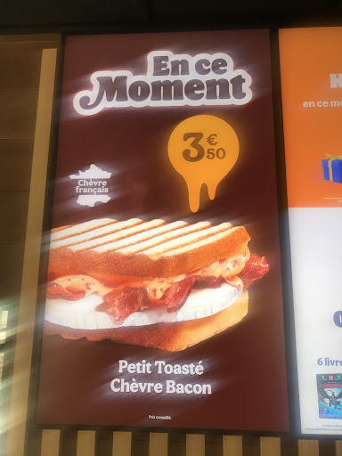 I was extremely hungry after a six hour drive to Carcassone⊠so I ordered a steak house burger meal and also the new petit toaste ChĂšvre Bacon. The burger was lovely. Very tasty, fresh salad and not too much burger sauce. Fries were fine but bland. The Toastie thing was an absolute farce! Two very thin pieces of toast - fair enough - a sloppy mess of goats cheese and two tiny (and I mean tiny like the size of two postal stamps) pieces of Bacon which werenât even cooked as far as I could tell and were 70% white fat. The incredible thing was that the mama her was sat next to me on his laptop working. I showed him and said âthis is disgusting and nothing like the pictureâ⊠he replied âPetitâ!!! I said yes but 3.5⏠is a fairly significant sum of money for something so terrible. He did not even seem embarrassed about this in his restaurant and just carried on chatting to a mate of his who had come in. No offer to replace it, refund it. Nothing. What a poor manager⊠I wish I had taken a photo of it before I ate half and chucked the rest in the trash! I will try and post the marketing picture⊠DONT...