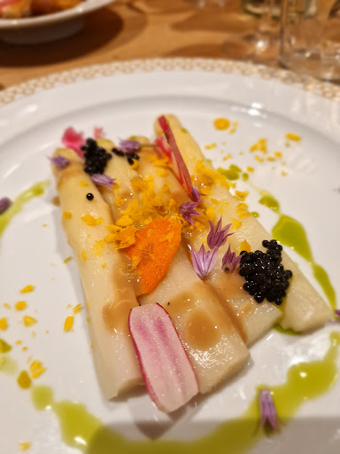 The bad: very slow service due to lack of staff which made it pointless mentioning anything as just wanted to eat by the time starters arrived. My 20euro starter of white asparagus essentially consisted of some overcooked, underseasoned waterlogged stringy asparagus w a little herring roe , the candied egg was lost in the water-didn't feel like any value was added to the asparagus and could have done better myself.