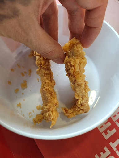 Read moreKFC obligé de mettre une banderole pour dire qu'ils sont ouvert tellement le KFC ne fait pas fini d'extérieur. Il est trop froid ! On est dans le sud! 2 ou 3 palmiers washingtonia et quelques Cordylines roses aurait ajouté un peu de verdure. Au lieu de ça des cailloux blancs qui finissent sur le parking et de la mauvaises herbes commencent à pousser. Dès le départ on comprend que les économies et le manque de faire bien sont là. Ensuite il manque je pense de personnelle pour nettoyer les tables soucis d'économie ? Idem en cuisine 23min d'attente pour un menu... Alors que le resto est presque vide. Je ne comprends pas. L'épaisseur des tenders un records de finesse! Merci avec ma fille on en a beaucoup rigolé! Surtout étant habitué à la chaine de Fast food Caine's aux USA ... Vous êtes juste une...