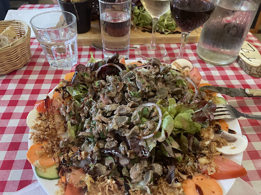 Une dĂ©coration improbable, plus un entreposage de vieux fourbis sans intĂ©rĂȘt quâautre chose. Un restaurant de bord de route oĂč les couverts sont douteux, les carreaux sans doute lavĂ©s avec la mĂȘme eau de vaisselle. Une soupe de lĂ©gume. Correcte, banale, Ă lâexception du prix : 9 euros lâassiette de soupe. Ouch, et puis⊠Bof. Le plat principal : cĂŽtelettes dâagneau oĂč, surprise du chef qui aura voulu nous faire plaisir, nous trouvons, avec deux cĂŽtelettes, du collier. 24⏠le plat principal de cĂŽtelettes dâagneau, avec du collier ?Ouch, encore. Le collier Ă©tant un bas morceau. Quelques patates grenaille, une salade avec cette sauce sucrĂ©e-salĂ©e quâils mettent partout, tant en assaisonnement quâen dĂ©coration. Et hop. Envoyez. En rĂ©sumĂ© : cher, banal, pas propre, et il ne faut pas y aller pour la dĂ©coration. Faites donc 10 km de plus pour aller dĂ©couvrir des merveilles de petit restaurants. Celui-lĂ nâa pour mĂ©rite que dâĂȘtre le seul Ă la ronde. Il nâest pas mauvais, mais Ă ces tarifs-lĂ il y a de bons, dâexcellents restaurants. Câest une cantine de luxe pour viandard peu regardant.