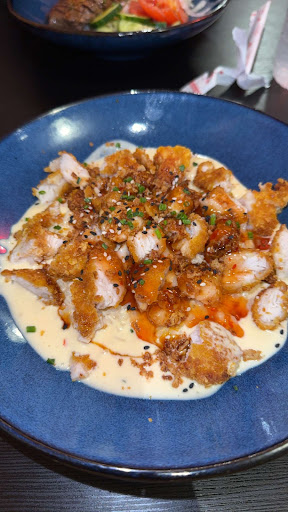 Déception comparée aux avis très positifs de la plupart des gens. Contrairement à ce qui est dit, les produits ne sont pas de qualité. Les nems étaient cartonneux, sans goût accompagnés d une seul feuille de salade industrielle iceberg. Pas de sauce nems classique. Uniquement celle piquante et gluante pour les gyozas. Les california sushis étaient fades également car le riz n était pas vinaigré. La sauce soja sucrée beaucoup trop gluante. Les crevettes du Pad thaï industrielles et déssechées ... et les nouilles sautées baignaient trop dans la sauce. Les baguettes ne nous ont pas été proposées. La serveuse était souriante et acceuillante, domage que son téléphone en haut parleur hurlait en continu pendant notre repas... Il est vrai que les plats étaient copieux, et peu chers mais quand on voit la qualité des produits on comprend... Dommage! Sur le papier ça avait...
