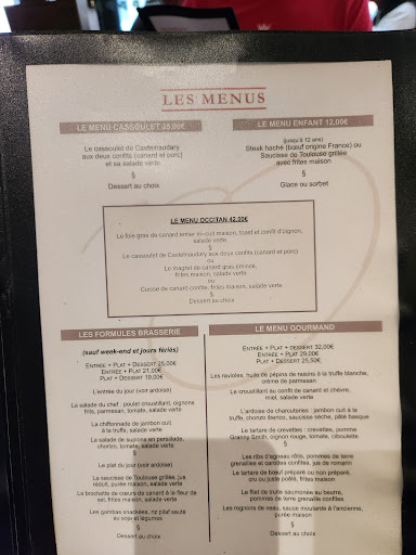 Sur place, ce n'est pas le cas. Choix unique entre deux formules. Soit 23e pour cassoulet salade et glace au caramel ou bien Confit de canard, purée, salade et glace au caramel pour 20e. Et pas de formule enfant pour ma fille de 4 ans.
