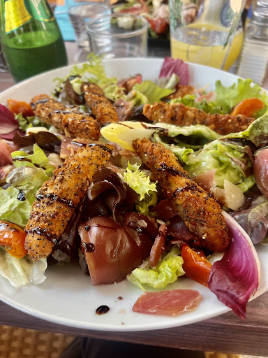 Read moreA very good, moderately priced, restaurant in Gigondas. A short walk from the center of town. The shady seating was welcome on this very hot sunny day. The La Carte menu featured some interesting salads. We chose the Italian, Poulet, and Chèvre. Each were very different in the types of lettuce and tomatoes used. The chicken was bread coated and sliced, the Italian cheeses and ham were cut and curled, the goat cheese was cut in rounds on toast and warmed. The presentation of each was beautiful. They were delicious as...