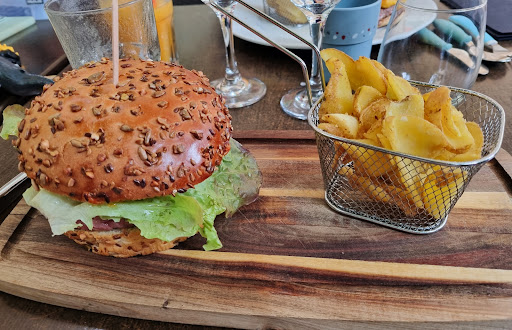 Read moreSuperb, imaginative food at very reasonable rates. The staff here were welcoming, friendly and efficient. The service was fluid but not hurried meaning that spaces were available but you could linger if you liked. The terrasse was well shaded but no view when sested. An electric mosquito repellant was wotking well and my little dog was welcomed. The food, was stand out good. My husband had the burger (not unusual) and reportedly delicious. My chef's salad was superb: marinaded beef, salmon in citrus, brochette of prawns, tapenade on toast, fresh, garlicy gazpacho and a chevre panna cotta with a slick of pesto on top. All on a bed of well-dressed leaves and beetroot. Truly delicious. Dessert comes included and had several options, ice-cream and cheese. The peaches were so refreshing in a light syrup, fragranced with verbena. The chocolatd fondant oozed as if should. That, a demi-piche of a good rosé and two coffees for less than €60 represents excellent value, as well. We...