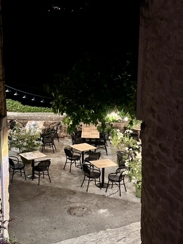 After a long 3-hour drive from the airport, we arrived late and hungry in Crillon-le-Brave — and Clovis & Basina was just what we needed. Tucked away down a steep set of stairs, this cozy, welcoming spot felt like a secret find.
