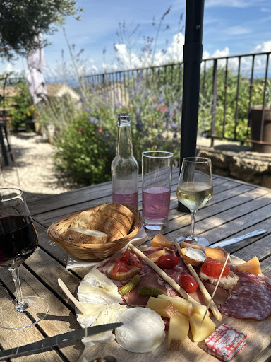 Read moreWe stopped in Châteauneuf-du-Pape with no expectations to what we might find. It is a tiny village on a hill-top and so naturally we followed the streets upwards to see what we would find. What we found was a charming outdoor, garden restaurant. We sat with an amazing view looking out at the countryside. It was wonderfully shaded by the trees and had a nice breeze. We of course tried a local wine, the Domaine Chante Cigale which was delicious. We had a charcuterie plate to snack on and the cheese and meats were delicious. The service was great and it was a charming, beautiful, and delicious way to rest after our hike to the...