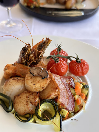 L'attente fût encore plus longue pour recevoir nos plats qui ne sont pas arrivés en même temps. Mon fils a reçu son plat quand nous avions eu fini de manger le notre. De notre côté, nous avions pris les Saint-jacques au risotto. Les saint-jacques étaient correctes, par contre le risotto était beaucoup trop cuit. Le filet de boeuf arrivé en retard n'était pas très bien présenté, cependant je suis honnête il était vraiment très bon. Attention quand même le dessus était trop grillé, ce qui ne nous a pas déplu, mais certains clients ne l'apprécient pas ainsi.