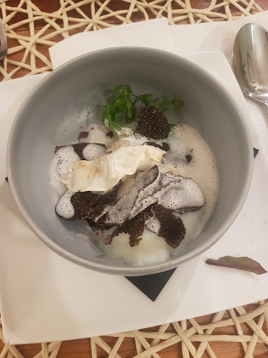 Read moreQuelle vĂ©ritable dĂ©couverte ! Nous qui pensions pourtant bien connaĂźtre les environs, nous n'avions encore jamais entendu parler de ce fabuleux restaurant, existant pourtant depuis 2007. Si j'en juge par certains commentaires plus anciens, l'Ă©tablissement a connu quelques petites maladresses et faux pas, que nous n'avons pas du tout rencontrĂ© lors de notre venue ! Un service impeccable, plein d'attentions, un cadre Ă la fois moderne et traditionnel ; une cuisine crĂ©ative, subtile et dĂ©licieuse ; ni trop copieuse, ni trop frugale ; les plats sont tous riches en saveurs (et en truffe, mĂȘme le dessert !) - je prĂ©cise tout de mĂȘme que j'Ă©cris ce commentaire en hiver, donc en pleine saison de la truffe (qui se dĂ©roule de novembre Ă fĂ©vrier) ; en dehors de celle-ci, peut ĂȘtre que le menu diffĂ©rera lĂ©gĂšrement, donc pour les amateurs de ce mets exquis, choisissez bien votre saison ! - Bref, je recommande vivement ce restaurant Ă tous les...