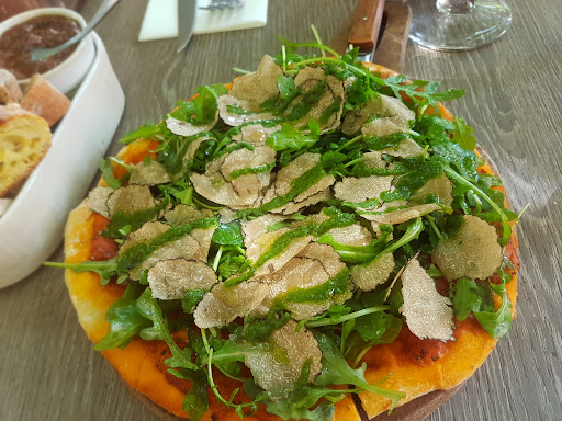 Read moreAccueil professionnel et très sympathique sur une place ombragée de platanes centenaires. Installés près de la fontaine rafraîchissante, nous n'avons pas senti le poids de la canicule pour profiter pleinement de ce déjeuner provençal. Une très belle et bonne cuisine intelligemment élaborée autour des produits ultra frais et locavores, pas plus de 30kms autour du restaurant ! L'identité de ce bistrot réside dans son four au feu de bois où sont mitonnés la plupart des plats... et des desserts ! Pour n'en citer que quelques-uns, la pizette à la roquette, basilic et généreusement garnie de truffe d'été ouvre l'appétit sur un rosé en biodynamie au top. La soupe de petit épeautre aux moules et safran ou la tomate confite sont des entrées puissantes en goûts, on sent vraiment la quintessence de toute la Provence dans ces assiettes. Les fleurs de courgette en tempura sont également à découvrir. Malgré le temps chaud mais sans aucun regret, nous avons succombé aux pieds et paquets d'agneau qui sont véritablement extraordinaires. En tant que Provençaux, et très difficiles sur le sujet, nous en avons très rarement mangé de meilleurs ! Les enfants, aussi très chouchoutés, ont apprécié leur volaille fermière de Mirabel au jus et petits légumes confits. Quant aux desserts, que ce soit les fraises, cerises et olives de Nyons au vin rouge avec glace à l'italienne Maison ou la tarte abricot et crème d'amande, ce déjeuner est un repas réussi de bout en bout. Le tout dans un menu à choix à 40 €, le rapport qualité-prix est juste, équilibré et plus que raisonnable, quelques euros de supplément si on veut se faire plaisir avec de bonnes truffes d'été, quoi demander de plus ? Un grand merci à toute l'équipe de salle pour leur accueil, leur gentillesse et leur attention, mention spéciale pour Thomas et Hervé ! Nous reviendrons en septembre,...