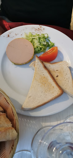 ENTRÉE : Rouelle de foi gras accompagné de ses toats La photo parle d'elle même... Foi gras industriel, toast de pain de mie, TOASTÉ D'UN SEUL CÔTÉ (Vive l'humidité de l'autre du coup....) accompagné de 4 morceaux de salade sans assaisonnement et un quartier de tomate pas mûre