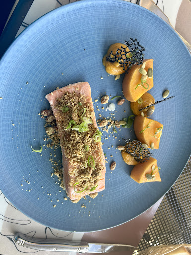 Read moreWe first came to this restaurant about 20 years ago, when 5 horses were ridden to drink at the fountain. We were awestruck by the sight, and the food and whole experience. We have returned now to a very disappointing lunch, and the awestruck feeling has gone. Stuffed vegetables and horse food barley, and the salmon, nicely cooked but no imagination, and boiled pumpkin (supposed to be roasted). It has really turned into a bit of a cycle stop, and catering for the cyclists. It was hugely expensive for what we got, and sadly we will not...
