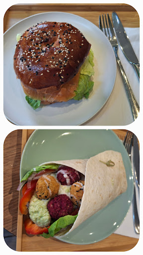 After a stroll through the lively Monday market, I enjoyed a fresh salmon bagel and a crispy, flavorful falafel wrap at Les Treize dessert.