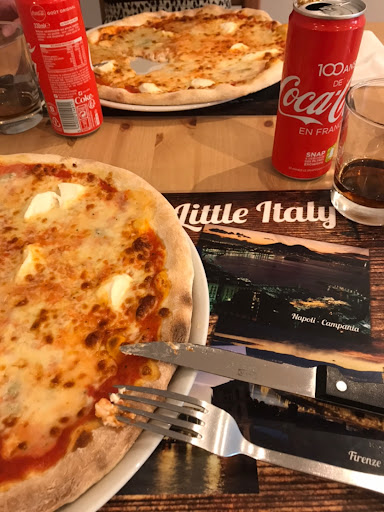 Small pizzeria but good, fast services on site. They have a large choice of pizza so you'll be disappoined. The staff is really kind ! I've asked if i can have 2 different pizzas in 1 and there was no problem for that. I'm giving 4 stars because of the small choice of drinks i mean ice tea and...