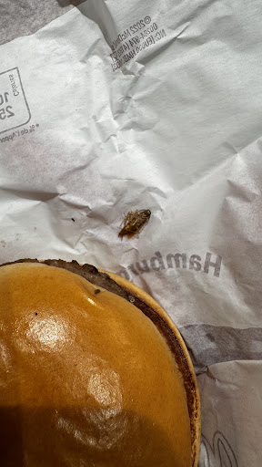 I never write reviews, but this time I am. We ate here with our family. After ordering, we had to wait 20 minutes; we were missing 2 bags of cucumber, 2 bags of apple slices, and my daughter received a burger with a cockroach (!) in it. An actual cockroach. This could have seriously affected my daughterâs health. Weâve never experienced anything like this before. There was also an old piece of meat under the table from previous guests, covered in ants. I do not recommend this McDonaldâs.