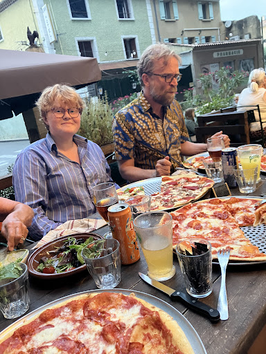 This place was excellent located for us, we stay between Bedoin and Mormoiron. In a group of 5, we had a different array of pizzas we tried, and they were all excellent, and most of all, very large! Which is ideal after a long day of cycling! The service is also good, friendly owners and staff. We highly recommend this place! We are going back later on in our holiday! We had beers, sodas, 5 large pizzas, pichet of wine, coffees and some of us had tiramisu, so plenty of things per person and we paid 30 euro a person, which is very low in price! In Bedoin or other places, this would...