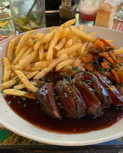 Jedoch sind die Speisen entgegen aller Bewertungen nicht das, was man sich von einer französischen KĂŒche verspricht. Schaut man sich die Bilder an, sind die Portionen fĂŒr 27 ⏠(wie das Filet) ihren Preis nicht wert. Das Ambiente ist ganz schön, könnte aber auch besser sein. Auch ist uns aufgefallen, dass das Personal immer wieder förmlich zwischen den GĂ€sten "abhĂ€ngt" und auch hier keine vernĂŒnftige Struktur herrscht.
