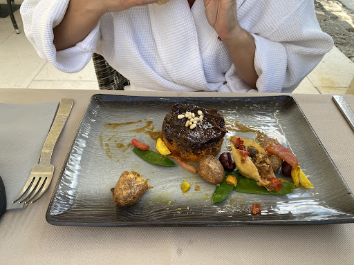 Read moreRestaurant se trouvant au SPA Ventoux Provence. Possibilité de manger sans aller au spa. Nous avions choisi la formule avec l’accès au spa. Au restaurant, Le personnel est professionnel et très accueillant, ils sont à nos petits soins c’est très agréable. Les plats sont très bons, faits avec des produits frais de saison. Petit bémol, les accompagnements (très bons) sont vraiment légers. Il manque de générosité dans vos assiettes. Le prix est un peu élevé par rapport à la quantité. Du coup, Nous avons eu rapidement un creux vers 16h00 mais nous n’avons trouvé personne dans le restaurant pour nous servir une boisson ou un goûter. Dommage. Le restaurant vaut le détour pour la qualité des produits servis et le cadre qui...
