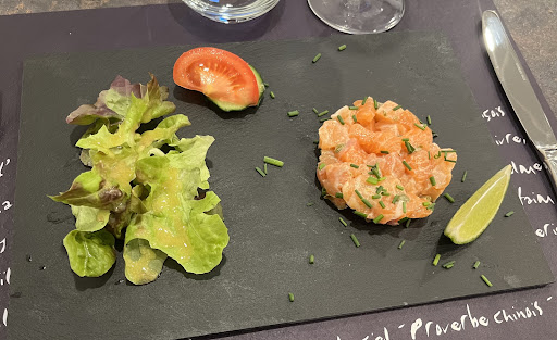 Friendly staff, nice setting, delicious and reasonably priced food. None of us had much French, so the chef, who sounded British, came out and generously walked us through and answered all our questions about the menu. I had the menu of the day, which included a delicious pork dish. A slight glitch is that they are listed as being open during the day and they use a reservation app that made it look like I'd successfully made a reservation for 3 for six pm, while like the other restaurants in the area the kitchen doesn't open until 7:30. We had a drink and chatted and were rewarded with delicious meals when serving...