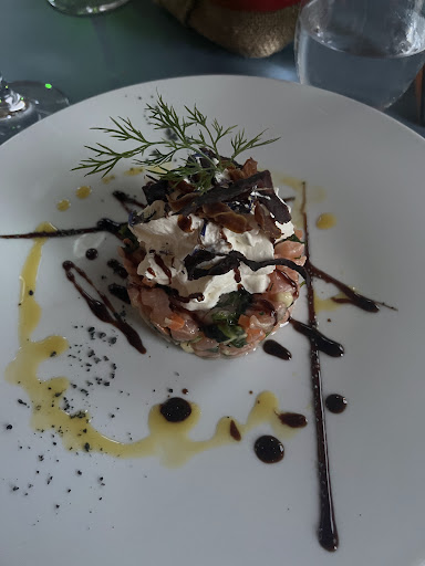 Ik nam de gin Tonic met basilicum, echt een aanrader was heel speciaal maar super lekker! Ook het eten (ik vermoed dat het menu vaker verandert) was overheerlijk. We hadden als voorgerecht lam (het driehoekje te zien bij de foto's) en de zalm. Deze waren super! Als hoofdgerecht hadden we de inktvis (zeekat) en de salade. Zoals op de menu kreeg je dus een hele zeekat. Deze was heel lekker net zoals de puree die er bij werd gegeven. Ook de salade was geweldig. Al bij al dus mega gezellig en overheerlijk eten. Dit samen met de goede service een top plek die ik...