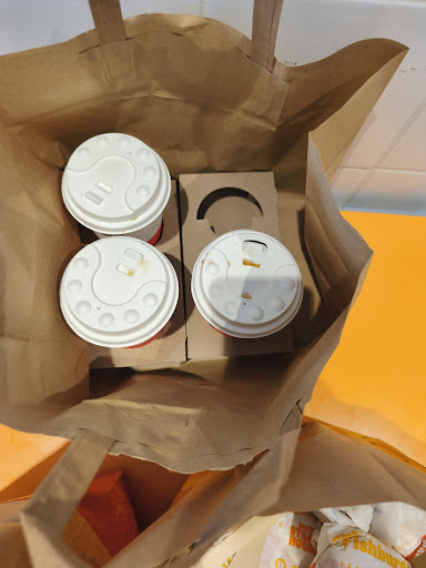 Je n'Ă©tais pas revenu depuis plusieurs annĂ©es. Au vu du dĂ©lai d'attente (arrivĂ© Ă 12h00 reparti Ă 12h37) plus le fait de devoir revenir deux fois pour avoir ma commande complĂšte (triple menu baby burger). La premiĂšre fois on Ă©tĂ© oublier 6 burger et la seconde fois, il n'y avait pas la salade du premier menu. Au total pas temps de monde que ça. De plus pour un menu sans personnalisation (pas de possibilitĂ© de personnaliser les burgers) donc censĂ© ĂȘtre plus rapide. Et bien non la vĂ©rification n'a pas eu lieu au grand dĂ©sespoir je prĂ©sume d'un responsable en lunette de soleil. Une fois de plus je suis déçu de devoir faire des vĂ©rifications de ce type avec le temps que cela a pris pour prĂ©parer ma commande. De plus on voit sur les pub ces burger dans une boĂźte (je rappelle qu'il y en a 9),la il sont en vrac dans un sac avec les consĂ©quences d'entasser des burgers qui viennent d'ĂȘtre fabriquĂ©s dommage. De plus plus de glace aucune cela fait beaucoup. Sans oublier le burger tombĂ© a terre d'un plateau prĂšs Ă ĂȘtre servi, qui a Ă©tĂ© ramasser et remis a terre coter comptoir ou son les poubelles. A minima la personne a passĂ© du dĂ©sinfectant sur le comptoir aprĂšs avoir pousser le burger par terre. DrĂŽle de...