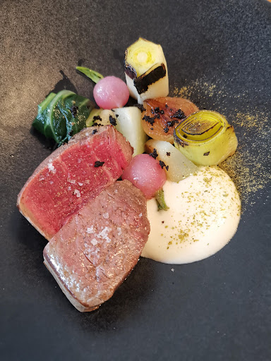 Wir haben das Restaurant empfohlen bekommen und sind zum Mittagessen hingefahren. Es liegt sehr unscheinbar und wir haben probiert ohne Reservierung einen Tisch zu bekommen. Der Kellner, welcher überaus freundlich war, versicherte uns einen Platz und wir konnten uns unseren Tische aussuchen. Das Mittagsmenü kostet mit Vor-, Haupt- und Nachspeise 28 Euro pro Person. Dabei gab es zwei Vorspeisen zur Auswahl, drei Hauptgerichte, je eins mit Fleisch, mit Fisch und Vegetarisch, sowie zwei Nachtische zur Auswahl.