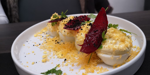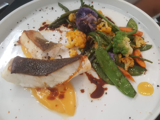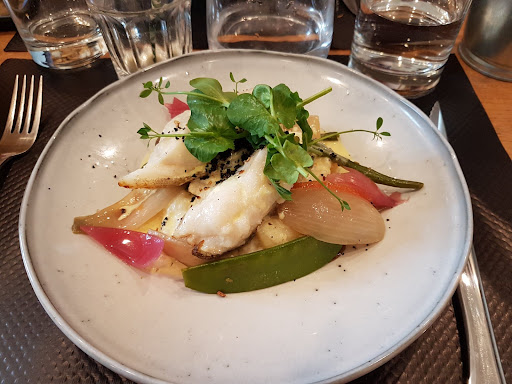 I don't know where to start....this restaurant is just superb...reasonable prices, kind, friendly and professional staff and the most delicious 😋 food!! The decoration inside is classic, warm and charming with plane chairs, suitcases, books etc. The day we went there we had a starter of yummy vegetable soup and a miso bouillon with Cucumber, crevettes and mushroom, the main course was salmon with pea risotto and a crevette sauce and to finish off this culinary delight was a coffee or tea gourmand with a mini muffin, a mini fruit crumble and the most divine mini chocolate cake and caramel sauce. I love sweet wine so I had a glass...not to be missed 😌!! Went again in April 2025 and had the best fish and chips and the starter of crevettes/shrimps with potato around it is...