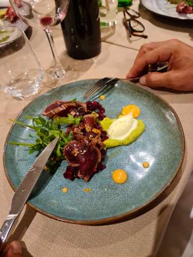 Les plats eux-mĂȘmes Ă©taient une autre source de dĂ©ception. L'entrĂ©e, bien que visuellement plaisante, Ă©tait dĂ©sĂ©quilibrĂ©e en saveurs. Quant au plat principal, il Ă©tait tout simplement immangeable : la viande Ă©tait surcuite au point de devenir sĂšche et difficile Ă mĂącher. Le vin, censĂ© accompagner le repas, a Ă©tĂ© servi en retard, tout comme le pain. Cela a gĂąchĂ© l'harmonie du repas.