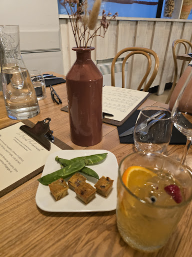 Restaurant testé en soirée. Les tables sont charmantes. Le restaurant n’est pas très grand. Il y a une dizaine de tables, on peut voir la cuisine qui est ouverte et séparée en partie par une verrière. J’ai tout d’abord été étonnée qu’on nous serve en apéro des petits pois dans leur gousse. C’est surprenant, original, mais malheureusement sans grand intérêt. Les entrées et les plats étaient bons et joliment présentés. La truite en entrée était peut être légèrement salée. Le brownie en dessert était un peu trop cuit donc un peu sec. Toutefois la crème fermière montée en chantilly lui apportait un peu plus de souplesse. C’était un partie pris car le goût de cette chantilly était quand même spécial ; elle se mariait très bien avec les points de caramel au beurre salé qui lui apportaient une touche sucrée. Au final: restaurant à découvrir. Bon rapport qualité/prix. Peuvent encore s’améliorer sur 2 ou 3 petits points c’est pourquoi je ne peux...