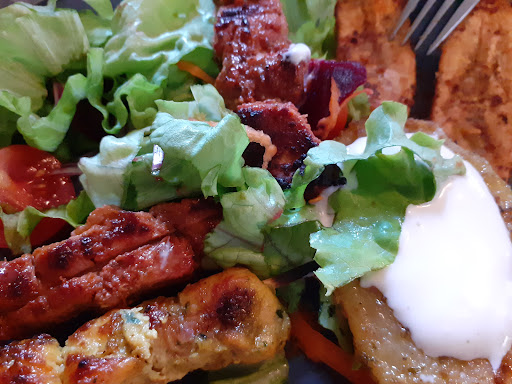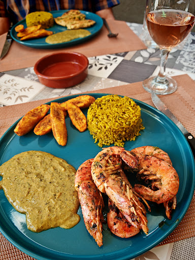 Isla de Mayotte inspired, with a Spanish twist, of generous portion of lovely vegetable stew with expertly fried plantains and the freshest of shrimp and a mildly sweet salad to accompany the spiced meal. All this accompanied by a flavorful vegetable rice dish. Soft tones of reggae playing and eclectic art decor while a vivacious Spanish origin hostess with friendly and creative cook curated our meal. Gem of a restaurant in a desert of options for a meal on a hot day in mazamet. Only small issue was they were out of the cold local beer we so needed however the meal more than...