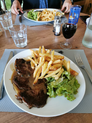 Restaurant découvert à l'occasion d'une escapade en forêt d'Argonne au premier jour de l'automne. Établissement bien situé au bord du lac du bourg. Parking aisé devant l'établissement. Restaurant familial fréquenté par les habitants de la région et les professionnels du secteur. Accueil chaleureux et efficace. Salle grande et lumineuse, bon elle aurait peut être tendance à reverber le bruit mais c'est le revers des grandes salles. Service rapide, souriant et professionnel. Lors de notre visite la carte présentait un menu trois plats plus café pour moins de 15€!! Un exploit à notre sens. Donc nous avons dégusté un délicieux aspic de jambon qui sentait bon la fabrication artisanale et locale (une re-découverte de ce plat). Puis une entrecôte grillées avec des frites maison et de la salade. Là un sans faute, l'entrecôte pas trop épaisse parfaitement grillée et cuite. Les frites à la cuisson parfaite !! Croustillant parfait et cœur onctueux à souhait, une tuerie ces frites !!! Enfin un Paris Brest bien réalisé et goûteux en dessert avec un bon café inclus dans le menu. Le tout petit bémol, c'est que vu que la boulangerie du village était fermée, l'équipe a sans doute eu recours à un pain industriel (mais suffisant pour saucer ces délicieux plats 😊) Bref, nous avons adoré cette établissement que nous tâcherons de visiter dès...
