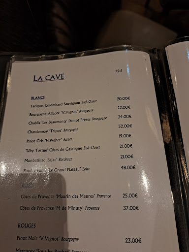 Alors j'étais avec un ami nous avons commandé pour le dîner une bouteille de Chardonnay Tripoz affichée à la carte sauf qu'on nous a apporté un premier prix de grande surface. Le temps de voir la différence on nous a expliquer que nous avions goûté et surtout que c'était la bouteille à la carte sauf que la comparaison de la carte et de la bouteille montre le contraire. Même son de cloche à la table d'à côté pour la viande. Dans les deux cas se sont les fournisseurs les fautifs.
