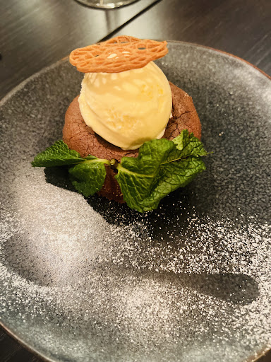 Read moreUne belle découverte pour ce restaurant. Nous avions réservé et sommes accueillis avec le sourire. Nous commençons par l'œuf moelleux en cocotte sauce foie gras, jambon Serrano et toasts au beurre d'ail.L'assiette est joliment présentée...au goût un délice. Notre Saint Marcellin au lard rôti en pastilla, pomme, noix et miel est tout aussi délicieux. Le croustillant de la feuille de brick, le fromage fondu, le lard qui apporte son petit goût fumé , la pomme et le miel apportent la douceur , le croquant de la noix et les fines lamelles d' oignon rouge font de cette entrée un magnifique assemblage de saveurs et d équilibre. Nous continuons sur le suprême de pintade rôti, sa sauce au vin jaune et morilles séchées. Que du bonheur dans l'assiette ! Les desserts suivent...tarte tatin et glace vanille maison ainsi que le mi cuit chocolat noir , noisettes et glace vanille . Visuel magnifique, et que du bon. C est un sans faute, du début à la fin pour ce repas ! Personnel disponible, agréable et souriant. Cuisine raffinée, équilibrée aussi bien visuellement que gustativement....nos papilles en redemandent ! Bravo à toute cette belle équipe ! Nous recommandons sans...