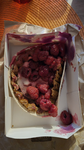 Read moreArriver dans les lieux une seul personne s'occupe des clients alors que nous étions au moins 7 à attendre donc longue attente. De gros papillons se promènent dans la boulangerie et des guêpes se promènent sur la nourriture. Sur les pancartes il est inscrit tout les types de cafés et en dessous Thé, chocolat, lait j'ai demander du lait on ma servie un café noisette. Nous avons voulut nous installer dehors mais toute les tables étais salle. Je ne recommande pas cet endroit malgré que tout...
