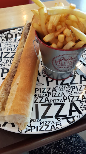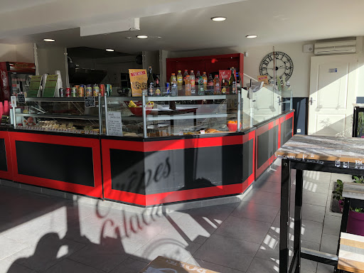 C'est un endroit convivial, nous pouvons y manger seul où entres amis et collègues de travail. Nous pouvons manger goûter à l'intérieur et à l'extérieur sur place où en apporter. Le décor est rouge et noir, il y a une télévision. La livraison est possible. Il y a de nombreuses formules. Salades - hot-dog - pizzas et de nombres choses encore... J'ai choisi un menu à 9,90 € un hot dog "demi-baguette" avec du steak haché, avec la sauce que vous voulez avec des frites, une boisson et le dessert que vous souhaitez. J'ai pris une tartelette crumble aux fruits...