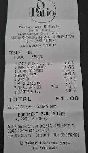 Read moreJ'ai récemment eu l'occasion de dîner au restaurant "Ô Patio" et je dois avouer que mon expérience n'a pas été à la hauteur de mes attentes. Malgré une réservation effectuée un mois à l'avance pour un groupe de neuf personnes, nous avons été extrêmement déçus de constater que notre table réservée à l'intérieur n'était pas disponible.