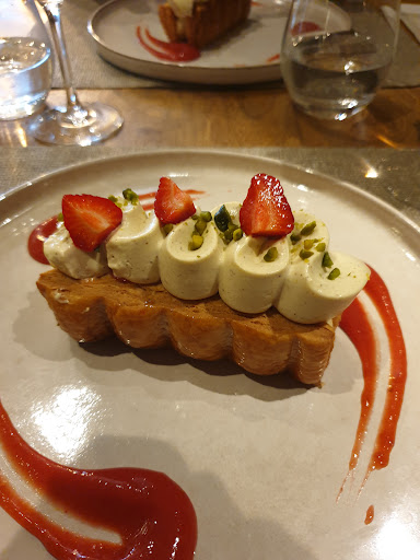 Read morePetit restaurant qui, vu de l'extérieur très joli cependant, n'attire pas plus le regard que cela, très trompeur en réalité... Réservation prise nous nous trouvons donc dedans, très belle déco, sans chichis mais raffinée, dans une ambiance calme, sereine, posée. De petites tables hautes disposées au carré, très propres, tout est bien aligné, une invitation aux voyages des papilles. Petit apéritif pour commencer, excellent Caïpirinha au passage, accompagné de dentelles de jambons et autre chorizo ainsi que quelques tartines, le ton est donné... En entrée, le Cannelloni farci, une pure tuerie, viandes diverses sur lit de tétragone, sauce morilles et vin blanc, quelques croûtons pour un peu de croquant, les yeux et les papilles sont sollicités...Wouahhhh le ton est donné. En plat l'onglet, cuit selon ma demande (bleu), avec sa purée de PdT et d'échalotes, agrémenté d'une sauce au poivre divine au caractère bien trempée, un régal qui présage un bouquet final magistral avec le dessert à venir. Quel dessert, mille feuille revisité aux fraises avec ça purée de fraises sur mousseline de pistache et ses éclats, rarement eu de tels mets de qualité dans un restaurant de ce type, enchanté, ravi, comblé sont les mots qui me viennent, j'y reviendrais sans aucun doute possible, cela frise l'excellence. Je recommande vivement, à deux, à quatre ou même en solo... continuez...