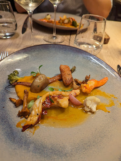 Read moreUn restaurant raffiné des produits sélectionnés de très bonne qualité, une équipe accueillante. Bémol : une cuisine qui se veut gastronomique mais des ratés sur l exécution et le dosage de certains plats. Pomme de terre trop grasses dans l assiette de mon compagnon, mais bien dans la mienne (nous avions le même plats un burger revisité). Un confit d échalotes mis en surdose, le plat était trop sucré les autres saveurs devenant inexistantes, une viande cuite dans une matière grasse trop chaude du coup extrêmement grillée sur les deux côtés et devenu sèche au centre. Quand j en ai fait part le chef a dit à la serveuse "je le cuisine comme ca, je l aime comme ca " Le dessert crème et glace parfaites séparément mais pas assez de crème pour apprecier le mélange de saveur avec la glace, soucis sur les petits financiers un peu sec (trop cuits). Il ne manque pas grand chose pour être parfait, trop de saveurs avec une mauvaise maitrise des dosages. Il est important je pense de cuisiner pour le client et...