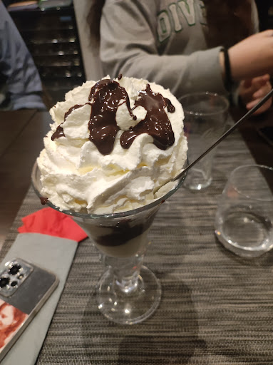 Pour le plat de résistance : affiché sur la carte "pièce de boeuf" je me suis retrouvé avec deux petits steaks peut épais et comme j'avais demandé bien cuit je me suis retrouvé avec deux morceaux de semelle. Entre une pièce de boeuf qui théoriquement fait une certaines épaisseur et un steak je ne demande pas la même cuisson. Seule les frites étaient bien cuites et pas huileuse. Bonne surprise le dessert, un mini banana Split qui était de bonne taille pour un mini et bon. En conclusion je ne retournerai pas pour m'y restaurer, peut être pour y prendre un verre à l'occasion d'une balade au bord de l'étang des forge mais pas plus.