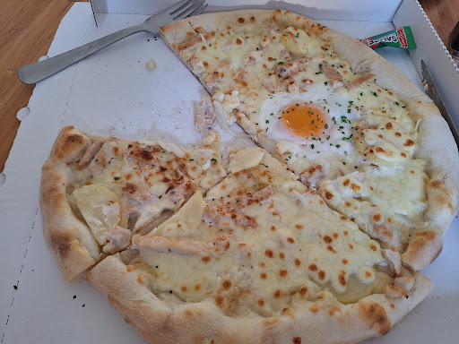 La nouvelle carte a bien augmenté, nous espérions que les pizza serraient meilleures... Eh bien non. La pizza poulet avait 4 petites tranches de pommes de terre, quelques rondelles d'oignon encore crues. La "nouvelle" reine (Oui, c'est une nouveauté car contrairement à l'immense majorité de pizza Reine, celle ci n'a pas de champignons et si on les veut, on les paye!) a des rondelles d'olives qui se battent en duel, bien cachées. 2 rondelles d'olives et un peu de jambon et 3,50€ en plus par rapport aux anciens propriétaires, moins les champignons.