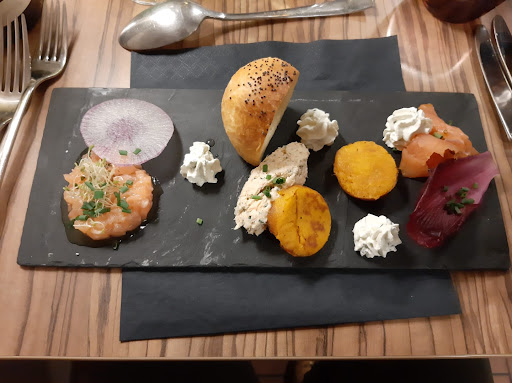 Read moreDécouvert un peu par hasard ce midi en visitant la région , ce restaurant se trouve à 100 m du centre-ville et de l'église. Nous avons passé un excellent moment et surtout nous avons très bien mangé, le rapport qualité-prix est excellent. Les quantités sont copieuses , préparées avec soin, on sent la qualité des produits . Ils annoncent travailler des produits frais , ça se sent vraiment dans l'assiette. On a pris l'assiette de tapas de l'entrée avec notre apéritif, c'était excellent et copieux. Les plats principaux était très bon . Et en dessert j'ai pris un café gourmand qui était lui aussi très copieux et tout aussi excellent. Ma petite fille de 4 ans s'est régalée de bout en bout. J'ai eu l'occasion de discuter avec le patron en sortant de déjeuner, super sympa , et je trouve génial qu'un patron aussi jeune soit à la tête d'un restaurant aussi bon. Nous y reviendrons sans aucun doute en repassant...