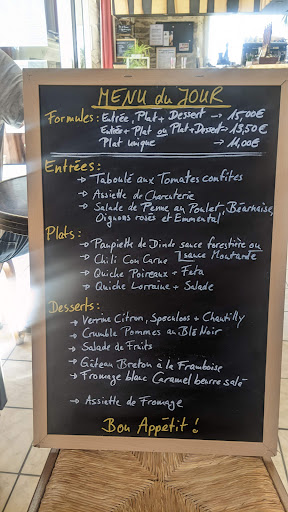 Ens vàrem aturar mentres feiem ruta i era una mica tard per dinar, i només entrar hi havia dos parelles espanyoles a una taula que ens van advertir, amb un somriure però a mode de queixa, de que allò era una mica un guirigall inintel.ligible, que feia mitja hora que estaven intentant entendre'ls i que havien vist que ja no els hi quedava pràcticament res de menú. Bé, jo crec que el seu problema era que no parlaven gens de francès i d'aquí la seva confusió a l'hora de comunicar-se amb els del bar, donat que la nostra experiència va ser tot el contrari: efectivament, a aquella hora ja no quedava gaire cosa del menú però, tot i això, van ser molt amables amb nosaltres, ens van informar del que quedava i del que no i vam poder menjar molt bé ja una mica fora d'horari. El menjar estava molt bo i la simpatia i el tracte s'agraeixen més encara. És el nostre 5è viatge per Breizh, si en un altre moment tornem a passar a prop, ja sé...