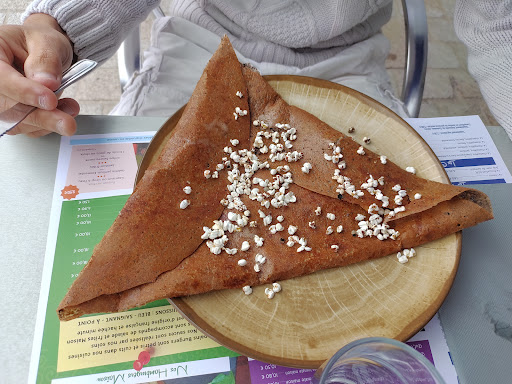 Read moreL'île au crêpes est un peu en retrait des autres établissements et c'est son point fort. Suivant la position de votre table vous aurez vue sur la place ou une petite vue mer. L'équipe est gentille et le service des plats est super rapide pour le moment mais la saison ne commençant vraiment que le 09/06/2021, ce n'est pas forcément représentatif. La crêpe dessert l'île aux crêpes et la carachoco valent le détour. J'ai vraiment apprécié le fait qu'il y ait une crêpe et un burger végétarien plus 4 crêpes totalement fromagères. La présentation de la crêpe végétarienne avec les éléments à l'extérieur est très sympa et c'est original mais attention à ne pas trainer pour la manger car du coup, cela refroidi assez vite. La terrasse étant exposée sud/ouest, le vent est un facteur à prendre en compte quand on choisi une table. On apprécierait vraiment que soit installé une "séparation" (paroi plexi, pots de végétaux un peu haut,...) Entre le kiné et la terrasse pour moins subir les jours de vents, sinon une veste voir un bonnet ne seront pas de trop 😉. Mais clairement, en dehors de ce détail, c'est une adresse à tester. Le plus? Les tickets restau...