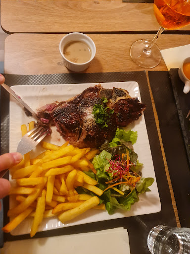 Pour le plat, nous avons entrecôte xxl accompagné de frites et d'une salade et sauce poivre à part ! Bonne ! Tartare de bœuf et une bonne découverte pour nous... la volaille savoyarde.. Miam ! Accompagné d'une sauce au reblochon et d'un jambon sec ! Incroyable ! Les quantités sont largement suffisantes !