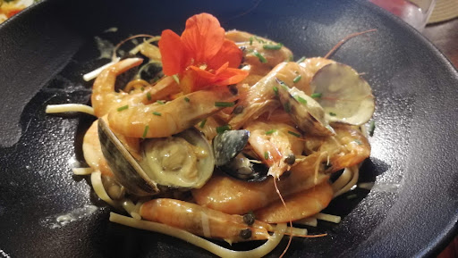 Plat à la carte "La Farandole de 4 poissons" prix 19.9€ jolie présentation dans une grande assiette, MAIS 4 portions tristement ridicule pour le prix ! Encore heureusement que l'on avait 4 portions de baguettes de pain pour combler un peu la petite faim et un dessert un peu plus généreux que le plat de résistance... Résultat pour 3 personnes ( 3 plats de résistances aux portions ridicules à 20€ + 1 bouteille de vin blanc à 23€ + 3 desserts à 7€ soit 104€... Bref extrêmement déçus, j'avais limite honte d'avoir amené mes amis dans ce restau qui se la veut gastronomique aux prix stratosphérique et aux portions ridicule, dans un lieu qui est plutôt populaires aux prix tout doux quand on vas ailleurs sur les quais. Visiteurs passez votre chemin "en courant" ! , allez plutôt au Styvel pour les plats de poissons...